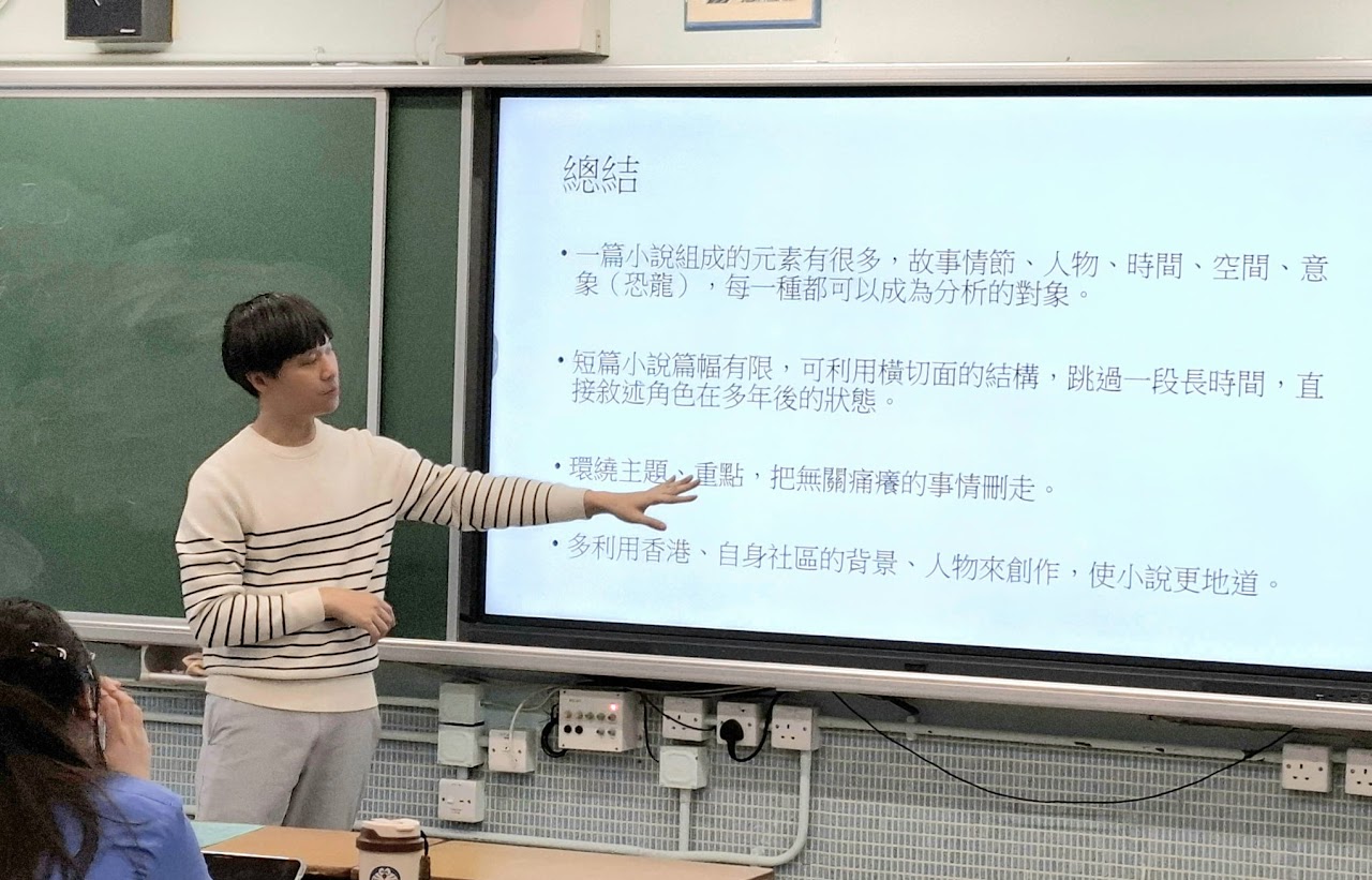 Our school invited Mr Tsui Cheuk-yin, an author, to conduct a writing workshop at our school to encourage students who were passionate about writing to develop their writing potentials through the guidance of the author and the activities of the workshop.