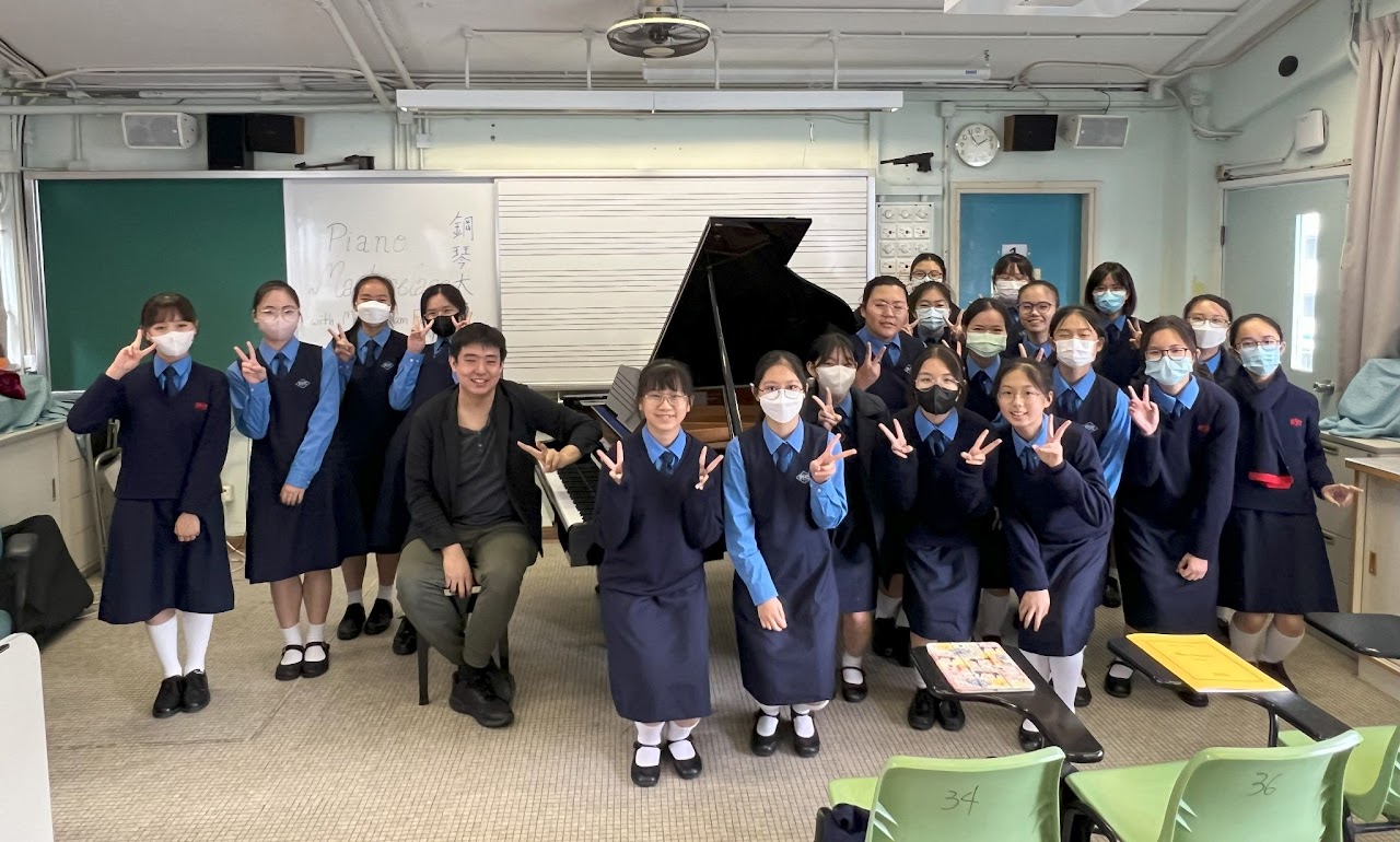 The aim of the event was to provide a chance for talented pianists to receive comments on their performing skills. All students were also welcomed to sit-in the class and 20 students attended. Four students, 1A Toni Chu, 3B Vincy Mok, 3B Bella So, 3D Rubie Chung, were chosen to perform their competition repertoires and coached by Mr. Fu. The chosen students showed positive feedback after the event and found the masterclass useful in enhancing their performing skills. 1A Toni Chu and 3D Rubie Chung got a champion and a 2nd-runner-up in the Hong Kong Schools Music Festival where they played the same piece coached by Mr. Fu. Students as the audience also raised a few questions on stage performance and showed eagerness to improve their skills.
